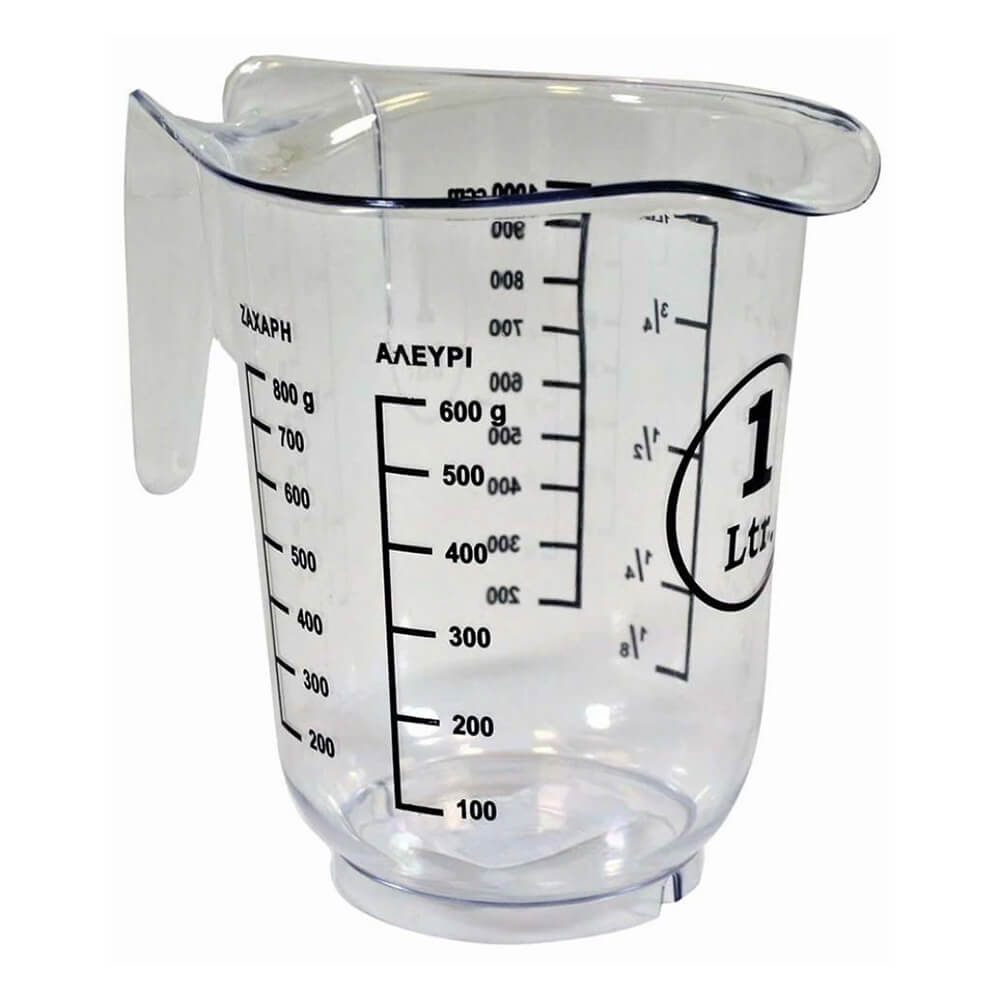 Δοσομετρητής υγρών ενός λίτρου από εξαιρετικό πλαστικό με πολλές διαφορετικές μετρήσεις.