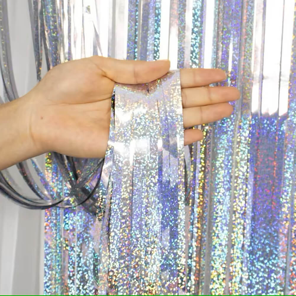 Κουρτίνα μεταλλιζέ ασημί ίριδα.