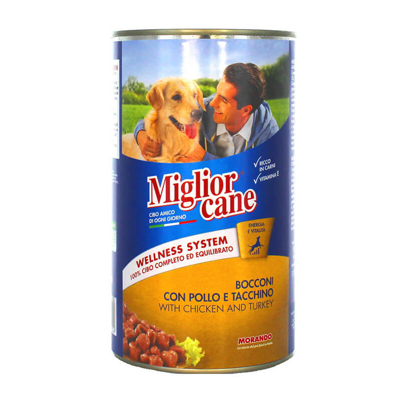 Υγρή τροφή από την Morando, κατάλληλη για σκύλους όλων των ηλικιών. Είναι ιδανική για μια ισορροπημένη διατροφή και προσφέρει την απαραίτητη ενέργεια που χρειάζονται για τις καθημερινές τους ανάγκες. Βοηθάει στην καλύτερη ενυδάτωση του οργανισμού τους καθώς περιέχει περισσότερο νερό και λόγω της μαλακής υφής της, συνιστάται για σκύλους με προβλήματα μάσησης. Μπορείτε να επιλέξετε τη συγκεκριμένη τροφή ανεξάρτητα από τη φυλή, καθώς ενδείκνυται για όλα τα μεγέθη σκύλων.