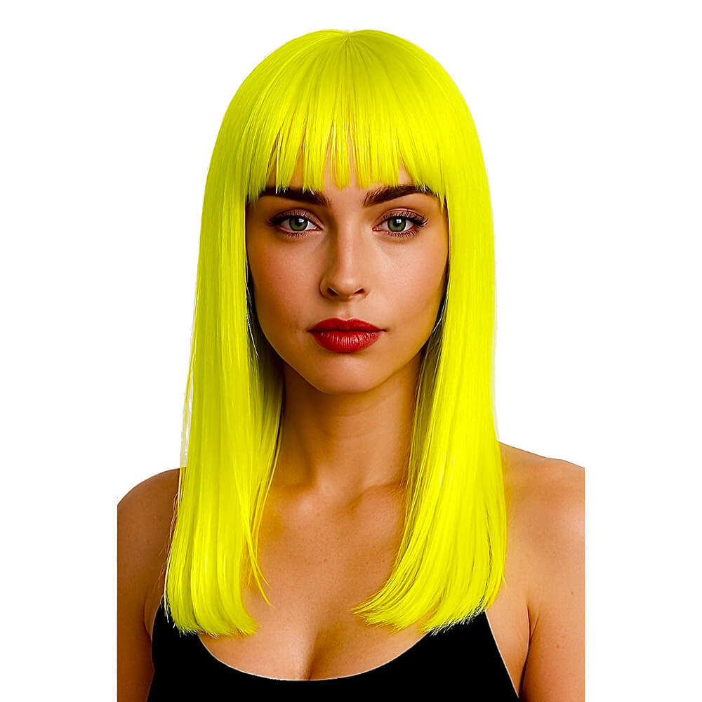 Αποκριάτικη περούκα καζίνο φωσφοριζέ μακριά με οφέλειες κίτρινη.