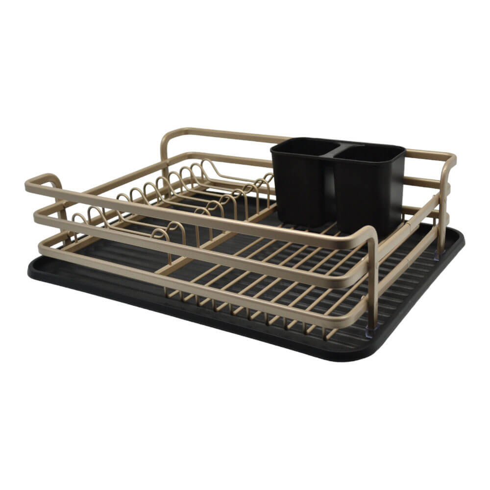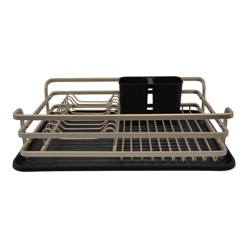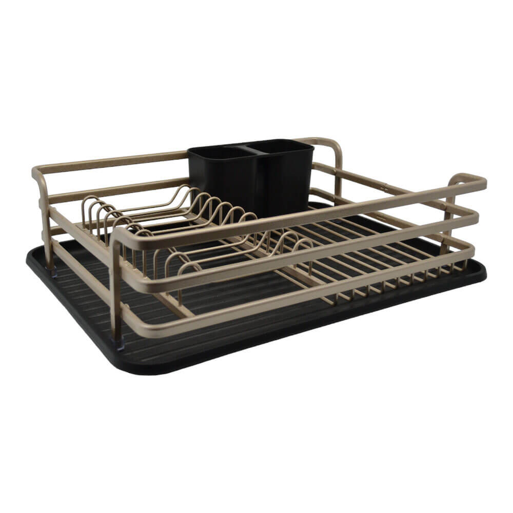 Πιατοθήκη αλουμινίου σε σαμπανιζέ χρώμα, με πλαστικό δίσκο και κουταλοθήκη σε μαύρο χρώμα.