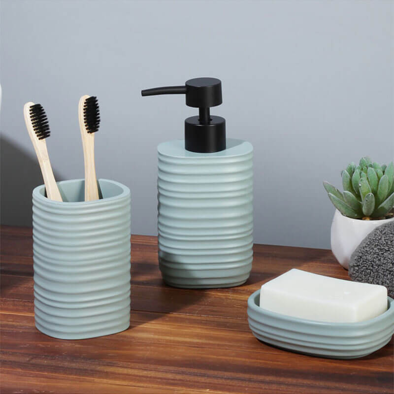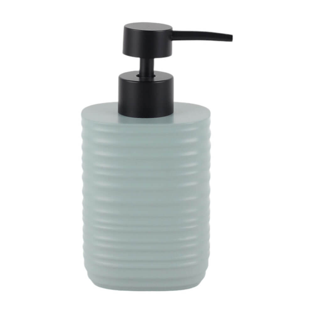 Σαπουνοθήκη για υγρό σαπούνι πολυεστερική, στο χρώμα της μέντας με ματ φινίρισμα και ανάγλυφη ριγέ υφή.