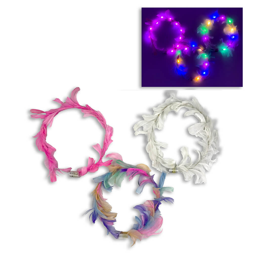 Στεφανάκι πουπουλένιο με φως 3χρ. ασορτί
