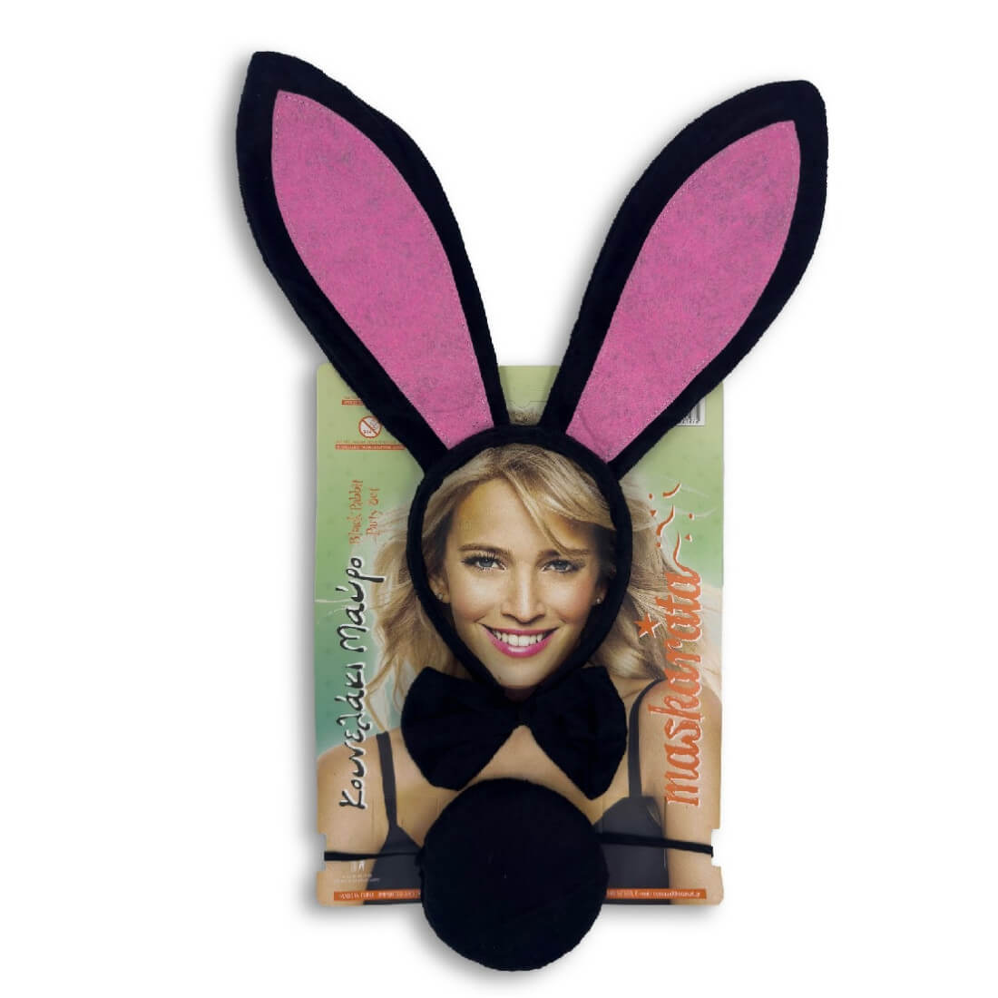 Περιλαμβάνει στέκα με αυτιά, παπιγιόν και ουρά.